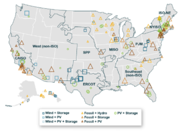 圖1到2020年美國現(xiàn)有混合部署項(xiàng)目的位置