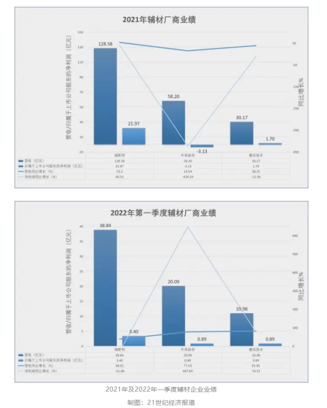 此外,2021年,其他輔材環(huán)節(jié),如背板、膠膜均遭受不同程度的成本壓力,因而三家輔材公司業(yè)績表現(xiàn)不一。