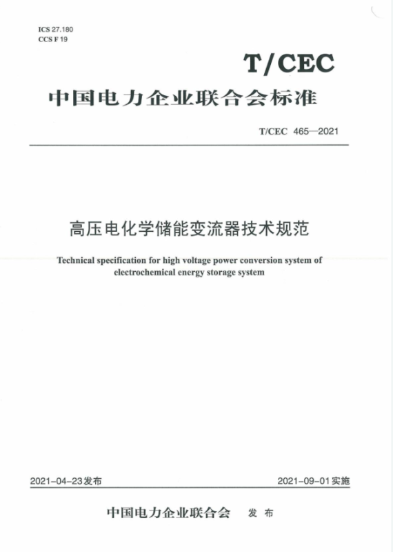 中國儲能網(wǎng)訊:廣州智光電氣股份有限公司(以下簡稱“智光電氣”)控股子公司廣州智光儲能科技有限公司(以下簡稱“智光儲能”)牽頭起草T/CEC 465-2021《高壓電化學(xué)儲能變流器技術(shù)規(guī)范》,規(guī)定了高壓電化學(xué)儲能變流器的分類、環(huán)境條件、安全、功能要求、性能指標(biāo)、標(biāo)識與文檔、包裝、運輸、儲運、檢驗等要求,適用于無需集成升壓變壓器、交流側(cè)輸出電壓等級6kV至35kV的高壓電化學(xué)儲能變流器。