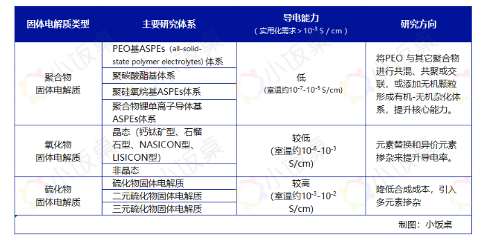 電解質(zhì)三個(gè)技術(shù)路線對(duì)比