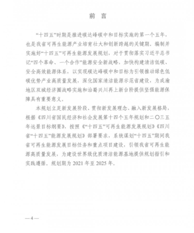 中國儲能網(wǎng)訊:5月7日,四川省發(fā)改委、能源局印發(fā)了關(guān)于《四川省“十四五”可再生能源發(fā)展規(guī)劃》的通知(以下簡稱“規(guī)劃”)。