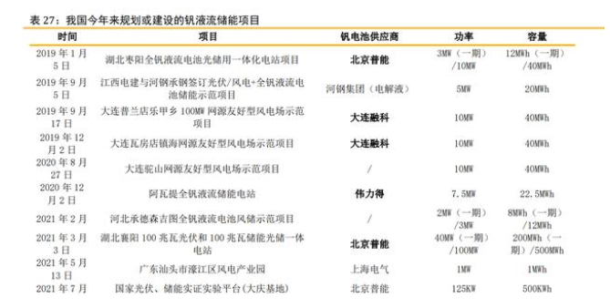 我國(guó)釩電池相關(guān)技術(shù)儲(chǔ)備充足,大規(guī)模儲(chǔ)能項(xiàng)目大量新增
