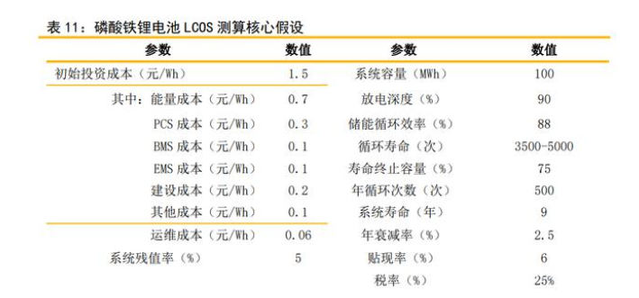 3.3 磷酸鐵鋰電池儲(chǔ)能成本分析測(cè)算