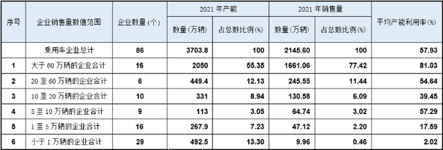 2021年乘用車產(chǎn)能按企業(yè)銷售量的分析(圖片來(lái)源:乘聯(lián)會(huì))