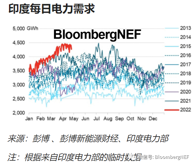 印度疫情后的經濟復蘇、工業(yè)活動有所增強且入夏以來的氣溫高于歷史平均水平,這都導致今年的電力需求激增。3月和4月的每日電力需求創(chuàng)歷史新高,空調負荷上升使印度3月電力需求同比增長5.9%。