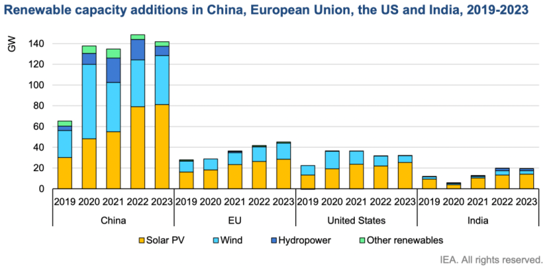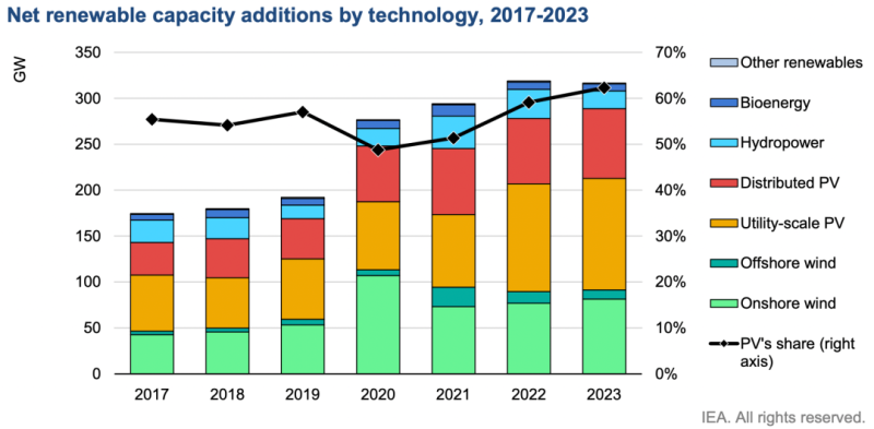 根據(jù)目前政策走向,可再生能源的全球增長2023年將失速,因為太陽能發(fā)電的持續(xù)增長被水電下降40%和風力發(fā)電增加量幾乎沒有變化所抵消。