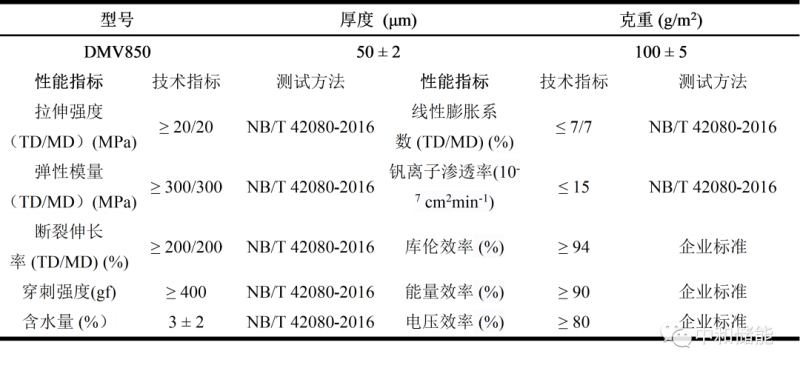 DMV850液流電池膜主要技術(shù)參數(shù)
