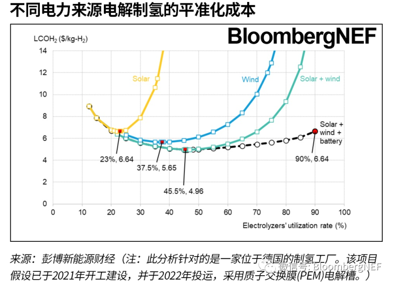 彭博新能源財經(jīng)的模型可以評估一系列廣泛的項目設計,但通常會得出兩個結(jié)論。首先,與單獨依賴一種能源相比,結(jié)合風光提供的解決方案更便宜。其次,對于需要穩(wěn)定綠氫供應的應用而言,增加電池可以提高經(jīng)濟性。