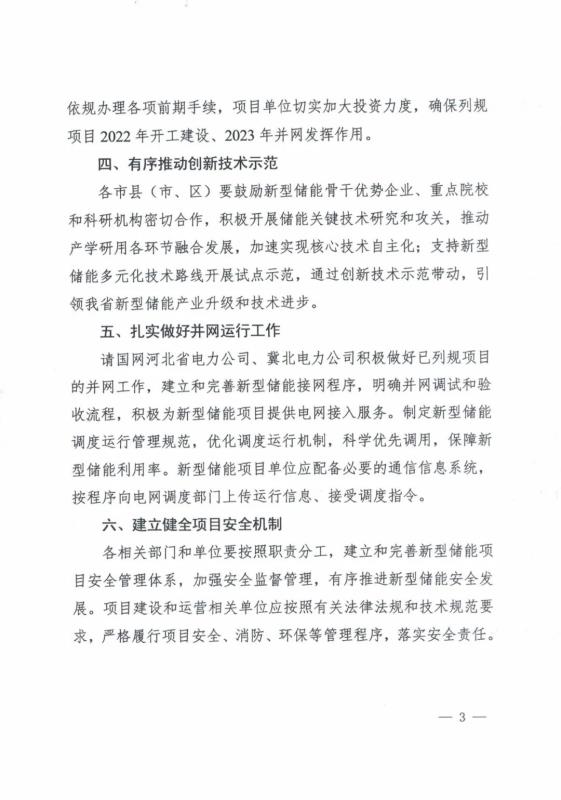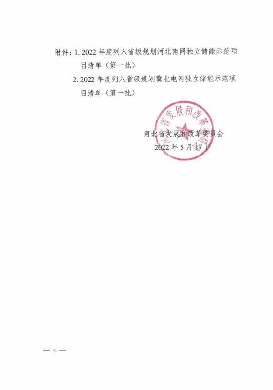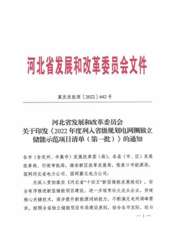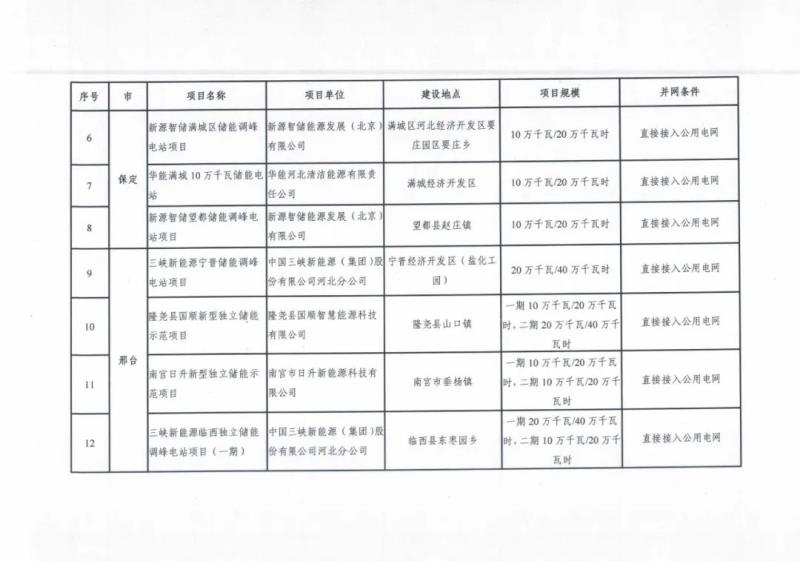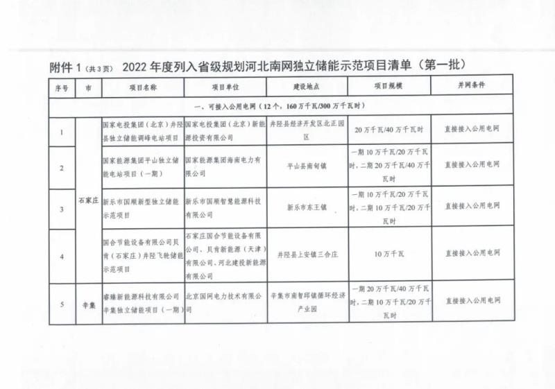 2022年度列入省級規(guī)劃河北南網儲能示范項目清單(第一批):