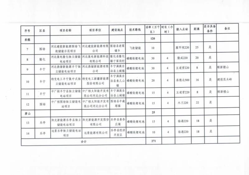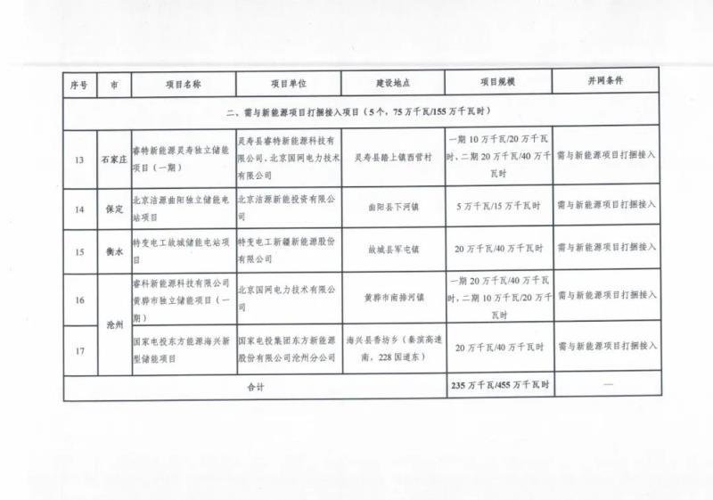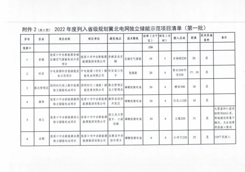 2022年度列入省級規(guī)劃冀北電網獨立儲能示范項目清單(第一批):