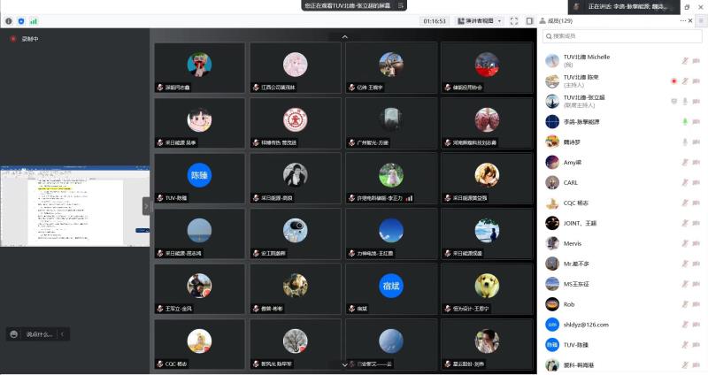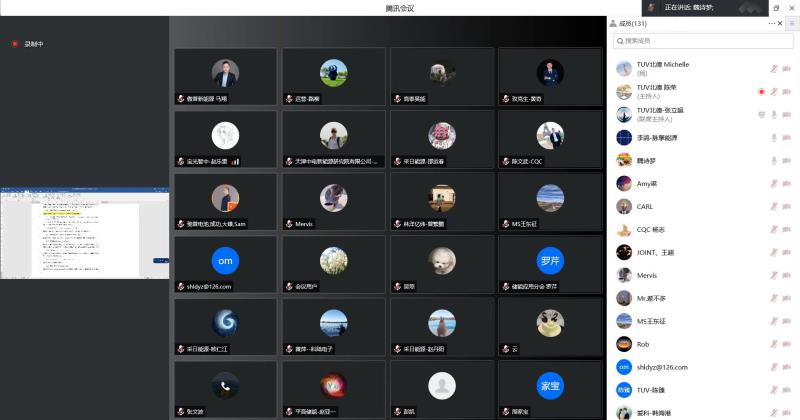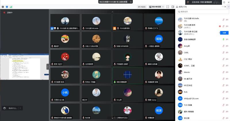 來(lái)自中國(guó)化學(xué)與物理電源行業(yè)協(xié)會(huì)儲(chǔ)能應(yīng)用分會(huì)、中國(guó)科學(xué)院電工研究所、TüV北德、平高集團(tuán)儲(chǔ)能科技有限公司、華自科技股份有限公司、北京天誠(chéng)同創(chuàng)電氣有限公司、華能天成融資租賃有限公司、長(zhǎng)沙勤凱智能科技有限公司、中創(chuàng)新航科技股份有限公司、西安奇點(diǎn)能源技術(shù)有限公司、寧夏恒為電力工程設(shè)計(jì)有限公司、上海采日能源科技有限公司、杭州平旦科技有限公司、河北興源工程建設(shè)監(jiān)理有限公司、新風(fēng)光電子科技股份有限公司、比亞迪汽車工業(yè)有限公司、國(guó)網(wǎng)江西省電力有限公司供電服務(wù)管理中心、浙江艾羅網(wǎng)絡(luò)能源技術(shù)股份有限公司、福建星云電子股份有限公司、中國(guó)質(zhì)量認(rèn)證中心廣州分中心、上海派能能源科技股份有限公司、科華數(shù)據(jù)股份有限公司、易事特集團(tuán)(河南)有限公司、雙登集團(tuán)有限公司、北京英博電氣股份有限公司、浙江萬(wàn)里揚(yáng)能源科技股份有限公司、湖北億偉動(dòng)力有限公司、國(guó)網(wǎng)浙江綜合能源服務(wù)有限公司、西安高壓電器研究院有限責(zé)任公司、天津瑞能電氣有限公司、上海電氣國(guó)軒新能源科技有限公司、捷遠(yuǎn)儲(chǔ)能科技(山東)有限公司、祥博傳熱科技股份有限公司、哲弗智能系統(tǒng)(上海)有限公司、廣東電網(wǎng)能源投資有限公司、西安奇點(diǎn)能源技術(shù)有限公司、深圳市馳普科達(dá)科技有限公司、上海蔚來(lái)汽車有限公司、中節(jié)能太陽(yáng)能科技有限公司、陜西延長(zhǎng)石油售電有限公司、北京寶光智中能源科技有限公司、廣州智光儲(chǔ)能科技有限公司、西安愛(ài)科賽博電氣股份有限公司、河南輝煌科技股份有限公司、成都特隆美儲(chǔ)能技術(shù)有限公司 、天津力神電池股份有限公司、廣東新會(huì)中集特種運(yùn)輸設(shè)備有限公司、江蘇林洋億緯儲(chǔ)能科技有限公司、通標(biāo)標(biāo)準(zhǔn)技術(shù)服務(wù)有限公司(SGS)、浙江高泰昊能科技有限公司、深圳市科陸電子科技股份有限公司、國(guó)網(wǎng)新疆電力有限公司吐魯番供電公司、美克生能源、長(zhǎng)興太湖能谷科技有限公司、傲普(上海)新能源有限公司、中國(guó)石化青島安全工程研究院有限公司、中電科能源有限公司檢測(cè)中心、天津中電新能源研究院有限公司、內(nèi)蒙古電力公司電力科學(xué)研究院、浙江一舟電子科技股份有限公司、廣東天樞新能源科技有限公司、江蘇科曜能源科技有限公司、許昌許繼電科儲(chǔ)能技術(shù)有限公司、國(guó)家電投集團(tuán)科學(xué)技術(shù)研究院有限公司、東營(yíng)昆宇電源科技有限公司、中國(guó)能源建設(shè)集團(tuán)廣西電力設(shè)計(jì)研究院有限公司、迅捷能源(武漢)有限公司、深圳市健網(wǎng)科技有限公司、西安新艾電氣技術(shù)有限公司等七十多家相關(guān)單位,共計(jì)140余人參加了本次線上會(huì)議。