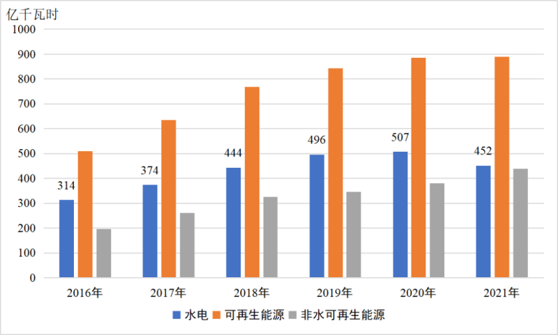 圖 1甘肅省2016-2021年可再生能源發(fā)電量