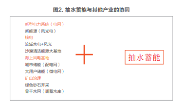 抽水蓄能是新型電力系統(tǒng)構(gòu)建的關(guān)鍵支撐,是解決新能源大規(guī)模接入消納、提高電力系統(tǒng)穩(wěn)定性安全性和促進(jìn)電力可持續(xù)發(fā)展的迫切需要。蓄能儲(chǔ)能電站,除電網(wǎng)需要外,沙漠戈壁荒漠風(fēng)光基地開發(fā)、流域水風(fēng)光一體化開發(fā)、城市和大用戶儲(chǔ)能與應(yīng)急備用、構(gòu)建微電網(wǎng)、局域網(wǎng)電力系統(tǒng)等,蓄能儲(chǔ)能設(shè)施必不可少,均需要配套建設(shè),見圖2。