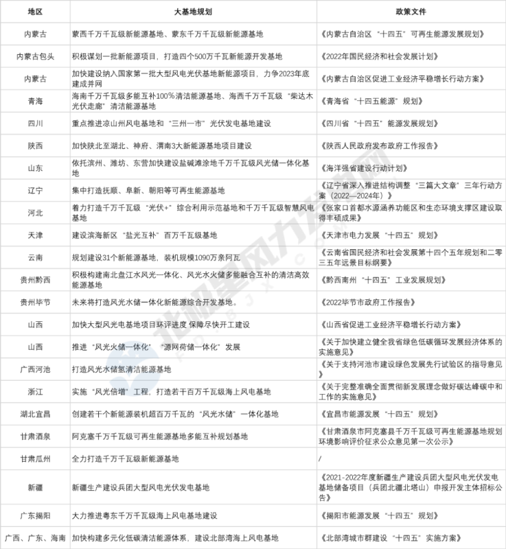 2022年2月,國(guó)家發(fā)改委、國(guó)家能源局印發(fā)《以沙漠、戈壁、荒漠地區(qū)為重點(diǎn)的大型風(fēng)電光伏基地規(guī)劃布局方案》,為風(fēng)光大基地建設(shè)規(guī)劃出了明確的路線圖。