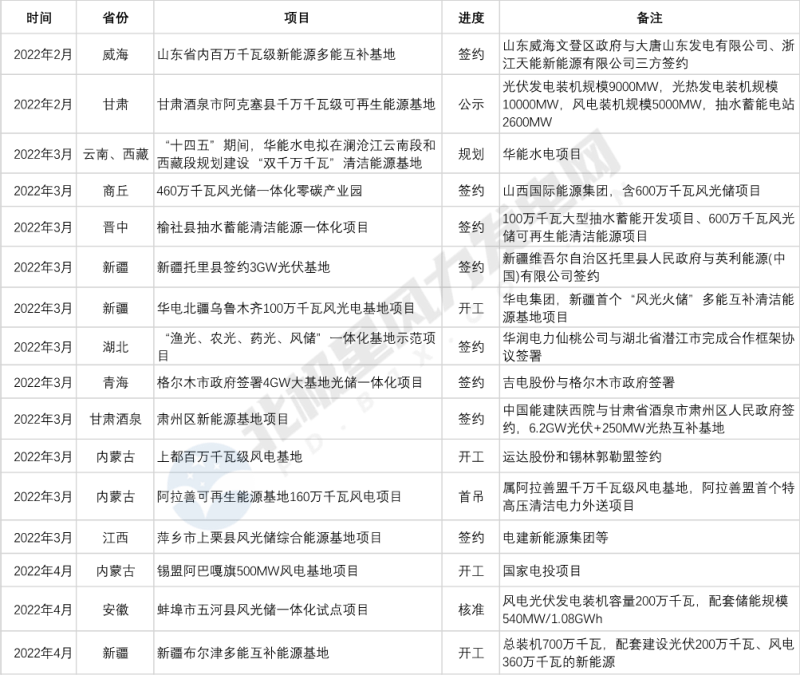 表1:近期落地可再生能源基地項(xiàng)目(不完全統(tǒng)計(jì))