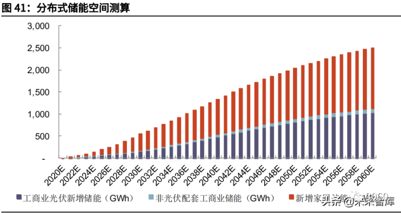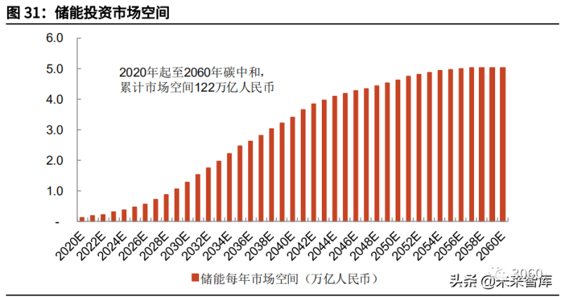 2060 年碳中和,儲(chǔ)能年需求空間 10 TWh;2020-2060 年累計(jì) 94 TWh,新增 儲(chǔ)能年復(fù)合增速約 7%。