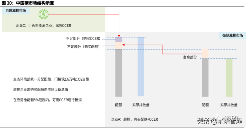(4) 可再生能源項(xiàng)目可通過配置儲(chǔ)能,增加出售 CCER 的收益。光伏和風(fēng)電屬于可再 生能源發(fā)電項(xiàng)目,通過替代基準(zhǔn)線情景下以火電為主的該區(qū)域電網(wǎng)的同等電量, 實(shí)現(xiàn)了溫室氣體減排。隨著 CCER 審批迎來重啟,可再生能源有望獲得額外競(jìng)爭(zhēng) 優(yōu)勢(shì)和附加收入,可再生能源企業(yè)可通過出售 CCER 獲得收益。 碳成本、綠證成本的內(nèi)部化有望增加儲(chǔ)能經(jīng)濟(jì)性。若電力資源交易市場(chǎng)、碳交易 市場(chǎng)得到大力發(fā)展,碳交易、綠證成本計(jì)入儲(chǔ)能項(xiàng)目成本,有望增加經(jīng)濟(jì)性,實(shí) 現(xiàn)平價(jià)。