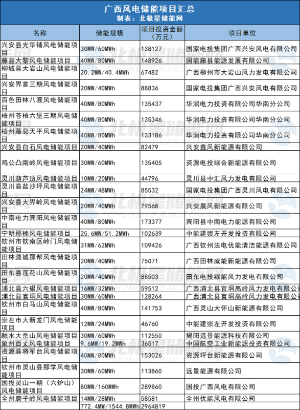 其中值得注意的是,融水大岳山風電儲能項目、田東縣蓮花山風電儲能項目、百色田林八渡風電儲能項目是廣西發(fā)布“能源網(wǎng)”建設2022年工作推進方案中的項目。資源縣將軍臺風電儲能項目、雞公凸南嶺風電儲能項目、興安縣白石風電儲能項目、興安縣大界嶺風電儲能項目、梧州藤縣天平風電儲能項目、梧州蒼梧六堡三期風電儲能項目等多個儲能項目是2021年市場化并網(wǎng)陸上風電、光伏發(fā)電及多能互補一體化項目建設方案的通知中提到的項目。
