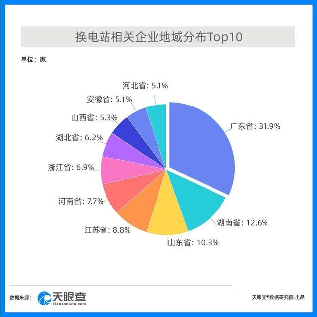 從地域分布來看,廣東、湖南以及山東三地相關(guān)企業(yè)數(shù)量最多,分別擁有340余家、130余家以及110余家;