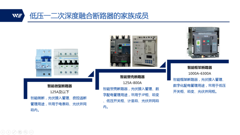 在新型智能電網(wǎng)低壓配網(wǎng)領域,本次推介的面向新型配電網(wǎng)的一二次深度融合低壓智能量測斷路器,是一款集電子式塑殼斷路器、計量儀表、藍牙通信、載波通信、分勵脫扣器、輔助觸點、溫度傳感器、拓撲注入與識別、孤島保護于一體高度融合的智能斷路器,具有短路保護、過載保護、電參量測量、遠程跳閘、開關狀態(tài)監(jiān)測、溫度監(jiān)測等豐富可觀、可調(diào)、可控應用功能,可廣泛應用于低壓配電各環(huán)節(jié)。