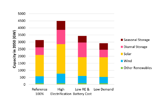 儲(chǔ)能未來(lái)研究(SFS)的情景評(píng)估了顯著但不完全的脫碳情景。然而,隨著電力系統(tǒng)轉(zhuǎn)向非常高的可再生能源貢獻(xiàn)(可再生能源超過(guò)90%),這些情景以及相關(guān)工作中評(píng)估的情景指向多日儲(chǔ)能系統(tǒng)或季節(jié)性?xún)?chǔ)能系統(tǒng)的潛在作用。