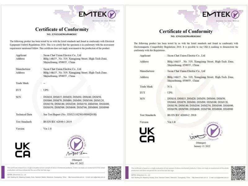 中國儲能網(wǎng)訊:日前,先控雙變換在線式高頻UPS產(chǎn)品順利通過各項嚴格的指標(biāo)測試,成功獲得CE與UKCA認證證書,取得進入國際市場的銷售通行證。