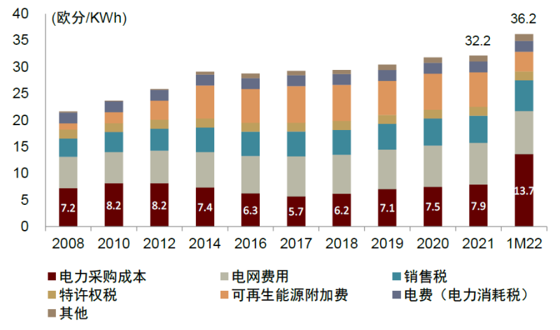 圖表21:德國(guó)家庭平均電價(jià)