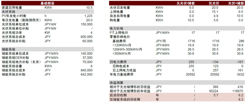 圖表18:日本東京家儲(chǔ)經(jīng)濟(jì)性測(cè)算