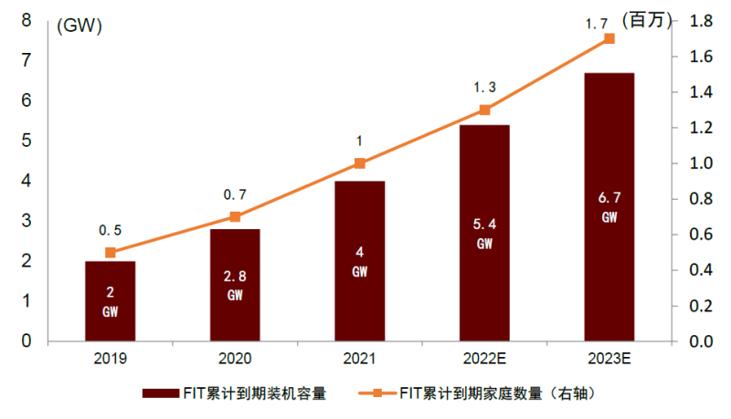 圖表17:日本FIT累計(jì)到期家庭戶數(shù)及裝機(jī)容量