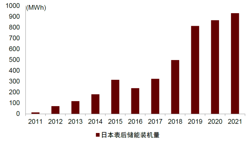 圖表15:日本表后儲(chǔ)能裝機(jī)規(guī)模