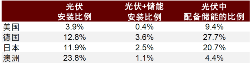 圖表3:2021年美德日澳戶用光伏及儲(chǔ)能滲透率一覽