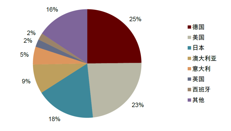 全球家儲(chǔ)裝機(jī)規(guī)??焖僭鲩L(zhǎng),德美日澳為主要裝機(jī)國(guó)家。2020年,全球儲(chǔ)能裝機(jī)規(guī)模約4.5GWh,其中德/美/日/澳為前四大裝機(jī)市場(chǎng),裝機(jī)份額分別約25%/23%/18%/9%,整體市場(chǎng)裝機(jī)較為集中。2021年全球家儲(chǔ)裝機(jī)進(jìn)一步高增至6.6GWh,同比增長(zhǎng)約46%。