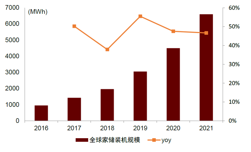 圖表1:全球家儲(chǔ)裝機(jī)快速增長(zhǎng)