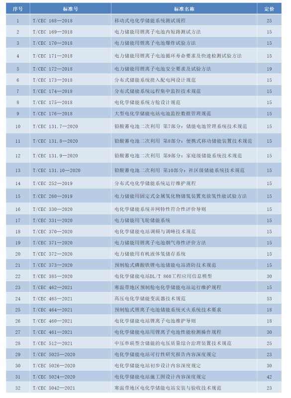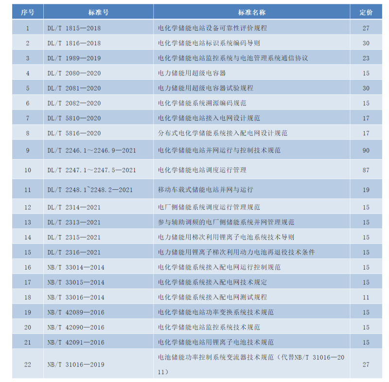 儲能相關(guān)行業(yè)標(biāo)準(zhǔn)名錄