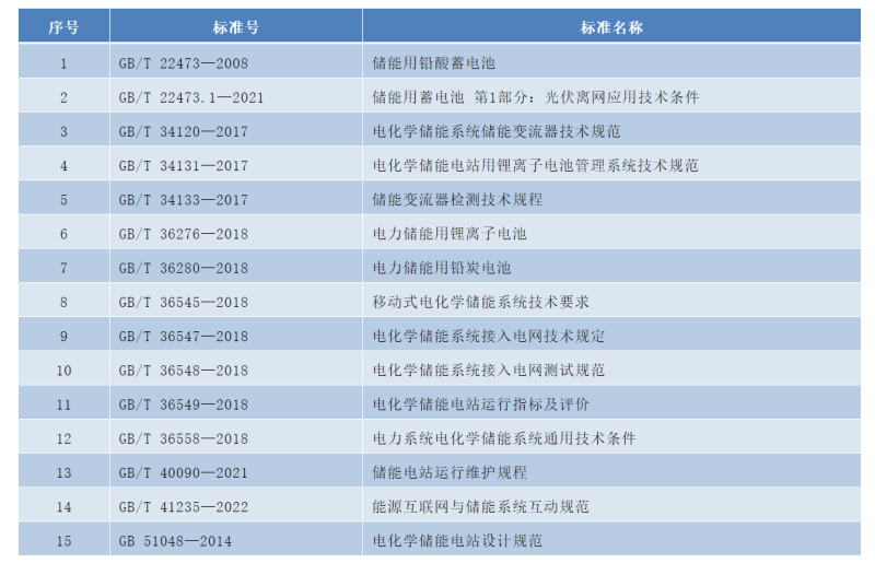 儲能相關(guān)國家標(biāo)準(zhǔn)名錄
