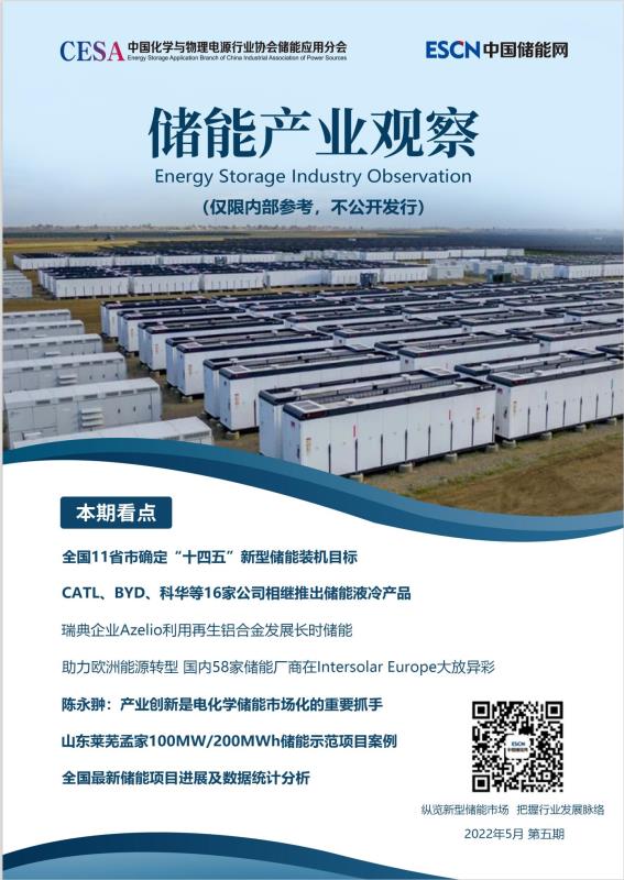 《儲能產(chǎn)業(yè)觀察》為電子版刊物,不對外公開發(fā)行,主要從業(yè)界關心的政策、標準、新型儲能技術、企業(yè)動態(tài)、項目統(tǒng)計、國際趨勢、產(chǎn)業(yè)觀察、典型應用案例、主要活動等層面發(fā)布信息,每月1期,目前僅面向協(xié)會會員單位和戰(zhàn)略合作單位定向發(fā)行。