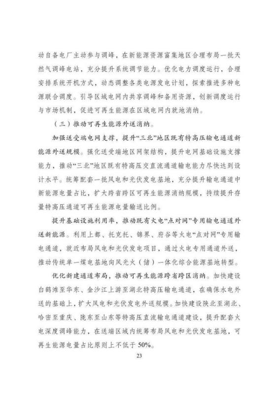 ——可再生能源電力消納目標(biāo)。2025年,全國(guó)可再生能源電力 總量消納責(zé)任權(quán)重達(dá)到33%左右,可再生能源電力非水電消納責(zé)任 權(quán)重達(dá)到18%左右,可再生能源利用率保持在合理水平。