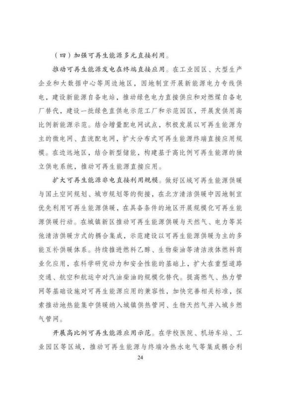 4、在工業(yè)園區(qū)、大型生產(chǎn)企業(yè)和大數(shù)據(jù)中心等周邊地區(qū),因地制宜開展新能源電力專線供電,建設(shè)新能源自備電站,推動(dòng)綠色電力直接供應(yīng)和對(duì)燃煤自備電廠替代,建設(shè)一批綠色直供電示范工廠和示范園區(qū),開展發(fā)供用高比例新能源示范。結(jié)合增量配電網(wǎng)試點(diǎn),積極發(fā)展以可再生能源為主的微電網(wǎng)、直流配電網(wǎng),擴(kuò)大分布式可再生能源終端直接應(yīng)用規(guī)模。在邊遠(yuǎn)地區(qū)結(jié)合新型儲(chǔ)能,構(gòu)建基于高比例可再生能源的獨(dú)立供電系統(tǒng),推動(dòng)可再生能源直接應(yīng)用。