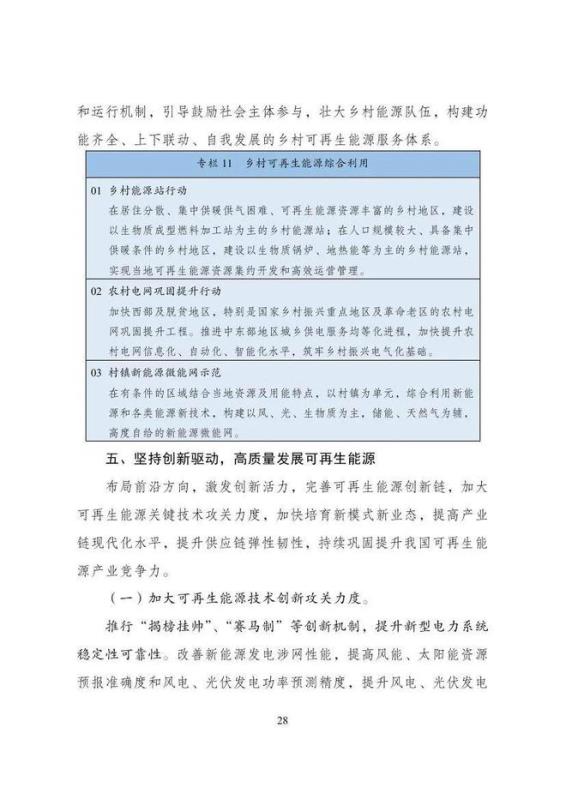 中國(guó)儲(chǔ)能網(wǎng)訊:6月1日,發(fā)改委等九部門印發(fā)“十四五”可再生能源發(fā)展規(guī)劃。規(guī)劃指出,“十四五”及今后一段時(shí)期是世界能源轉(zhuǎn)型的關(guān)鍵期,全球能源將加速向低碳、零碳方向演進(jìn),可再生能源將逐步成長(zhǎng)為支撐經(jīng)濟(jì)社會(huì)發(fā)展的主力能源;我國(guó)將堅(jiān)決落實(shí)碳達(dá)峰、碳中和目標(biāo)任務(wù),大力推進(jìn)能源革命向縱深發(fā)展,我國(guó)可再生能源發(fā)展正處于大有可為的戰(zhàn)略機(jī)遇期。