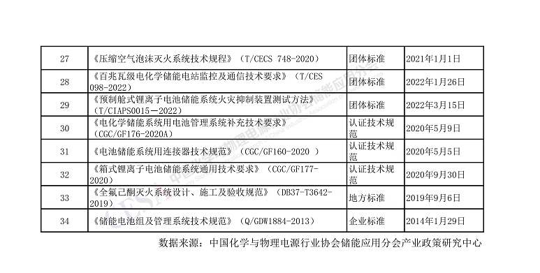 日前,據(jù)不完全統(tǒng)計(jì),電化學(xué)儲(chǔ)能電站建設(shè)及設(shè)備選型主要采用的標(biāo)準(zhǔn)有34項(xiàng)(已列表)。