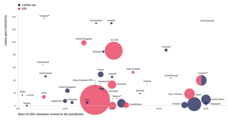 (一) 直接碳定價工具運(yùn)用日趨普遍,但全球覆蓋率依然很低