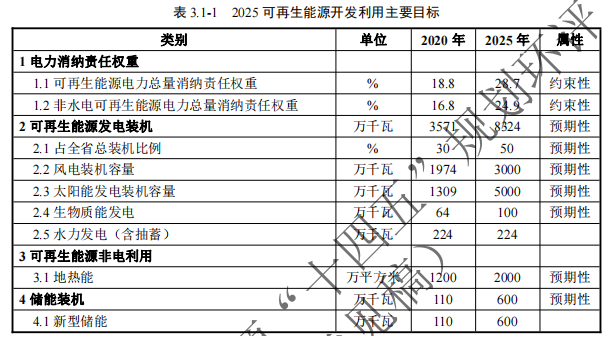 中國(guó)儲(chǔ)能網(wǎng)訊:近日,山西省能源局發(fā)布了《山西省可再生能源發(fā)展“十四五”規(guī)劃環(huán)境影響報(bào)告書(shū)(征求意見(jiàn)稿)》,文件提到,到2025年,全省可再生能源發(fā)電裝機(jī)達(dá)到8300萬(wàn)千瓦以上。其中:風(fēng)電3000萬(wàn)千瓦左右、光伏5000萬(wàn)千瓦左右、水電(含抽蓄)224萬(wàn)千瓦以上、生物質(zhì)能發(fā)電100萬(wàn)千瓦以上,新型儲(chǔ)能裝機(jī)達(dá)到600萬(wàn)千瓦左右,地?zé)崮芄┡娣e2000萬(wàn)平米左右。實(shí)現(xiàn)新能源和清潔能源裝機(jī)容量占比達(dá)到50%的目標(biāo)。到2030年,全省新能源和清潔能源裝機(jī)容量占比達(dá)到60%以上。具體如下圖所示: