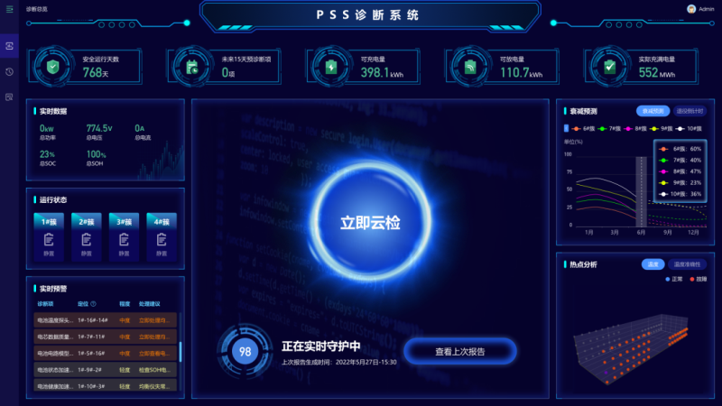 同時(shí),PSS系統(tǒng)還能夠在線對(duì)故障進(jìn)行定點(diǎn)定位,免拆解獲取電芯層面電池關(guān)鍵性能參數(shù),“零時(shí)間成本”對(duì)鋰電池儲(chǔ)能系統(tǒng)進(jìn)行“體檢”,提供電池健康狀態(tài)評(píng)估、電池狀態(tài)校正、電池剩余壽命預(yù)測(cè)等服務(wù),為運(yùn)維人員提出科學(xué)建議,從而更大程度的保障鋰電池儲(chǔ)能系統(tǒng)全生命周期的安全。