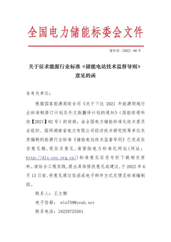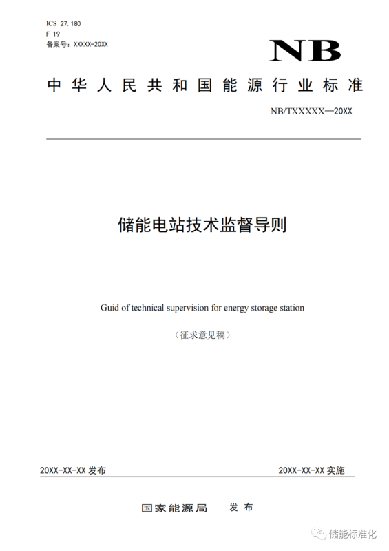 行業(yè)標(biāo)準(zhǔn)《儲能電站技術(shù)監(jiān)督導(dǎo)則》征求意見