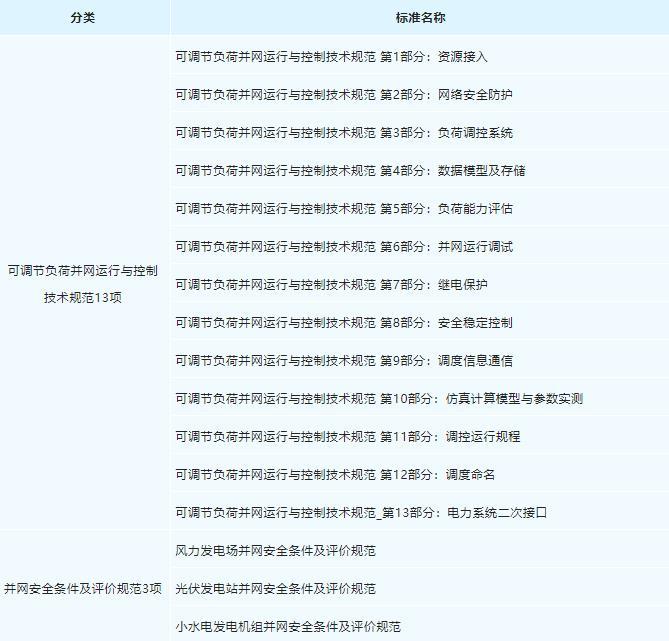 可調(diào)節(jié)負(fù)荷并網(wǎng)運(yùn)行與控制技術(shù)規(guī)范系列13項(xiàng)電力行業(yè)標(biāo)準(zhǔn)全面覆蓋并規(guī)范可控負(fù)荷資源參與電網(wǎng)調(diào)控業(yè)務(wù)各環(huán)節(jié),確??煽刎?fù)荷資源參與調(diào)控的安全性和規(guī)范性,提升了負(fù)荷調(diào)節(jié)資源的調(diào)控能力。風(fēng)電、光伏、小水電并網(wǎng)安全評(píng)估3項(xiàng)行業(yè)標(biāo)準(zhǔn)進(jìn)一步明確了新能源電站并網(wǎng)的安全性要求,為電源結(jié)構(gòu)轉(zhuǎn)型提供標(biāo)準(zhǔn)支撐。