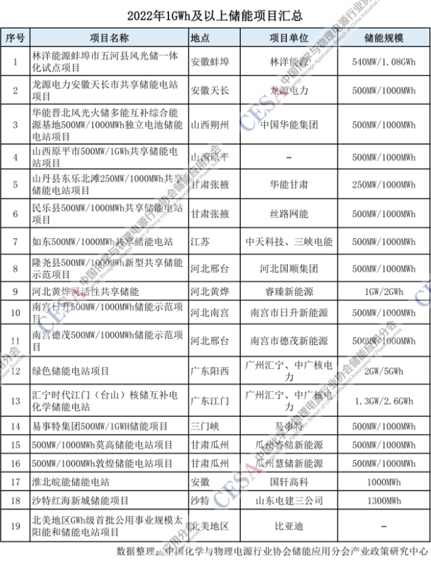 據(jù)中國儲(chǔ)能網(wǎng)不完全統(tǒng)計(jì),2022年1GWh及以上電化學(xué)儲(chǔ)能電站項(xiàng)目累計(jì)增加到19個(gè)(包括擬在建、招投標(biāo)及并網(wǎng)項(xiàng)目),其中國內(nèi)17個(gè),國外2個(gè)(沙特紅海新城儲(chǔ)能項(xiàng)目和比亞迪北美地區(qū)儲(chǔ)能項(xiàng)目)。