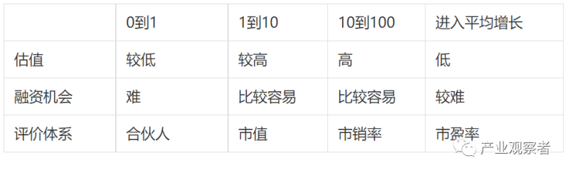 表4 不同階段的估值體系和融資機(jī)會(huì)