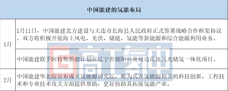 中國能建是一家為能源電力、基礎(chǔ)設(shè)施等行業(yè)提供整體解決方案、全產(chǎn)業(yè)鏈服務(wù)的綜合性特大型集團公司。公司依托氫能公司開展氫能前端技術(shù)研究、探索氫能商業(yè)模式、全面布局氫能產(chǎn)業(yè)鏈,正在努力推進氫能在工業(yè)、建筑、交通等主要終端領(lǐng)域的低碳化應(yīng)用,并完善“風(fēng)光儲充換氫”供能體系。今年上半年布局事件如下: