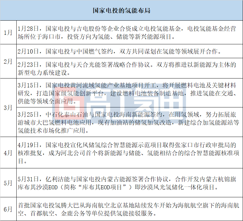 國家電投是我國五大發(fā)電集團之一,是全國唯一同時擁有水電、火電、核電、新能源資產(chǎn)的綜合能源企業(yè)集團,也是最早發(fā)力氫能產(chǎn)業(yè)的央企之一,已經(jīng)成為推動中國氫能與燃料電池產(chǎn)業(yè)化的重要力量。今年上半年布局事件如下: