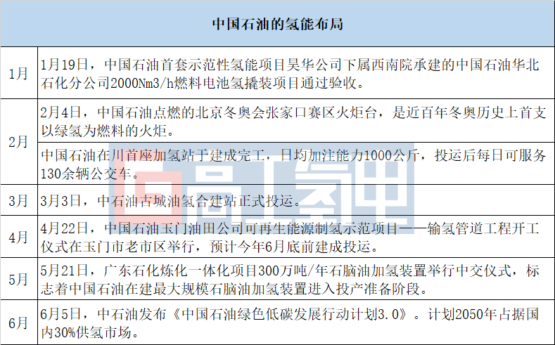 中國石油按照“戰(zhàn)略布局、穩(wěn)步推廣、規(guī)模發(fā)展”三步走階段部署發(fā)展氫能,重點發(fā)力,多元化制氫、低成本高效儲運氫,致力打造國內(nèi)領(lǐng)先的氫能供應(yīng)商、貿(mào)易商、服務(wù)商。今年上半年布局事件如下: